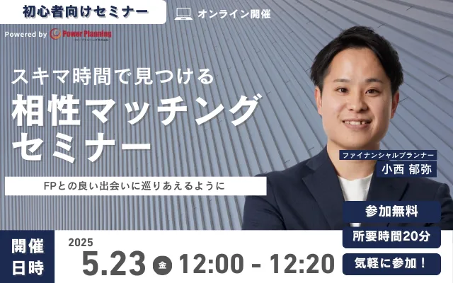 2023年5月23日(金)12時から、無料のマネーセミナーを主催する「アットセミナー」では、自分に合ったファイナンシャルプランナー(FP)を見つけるための「相性マッチングセミナー」が行われます。このセミナーは、参加者に短時間でプランナーの人柄を知ってもらい、実際に相談できる相手を見つけることを目的としています。