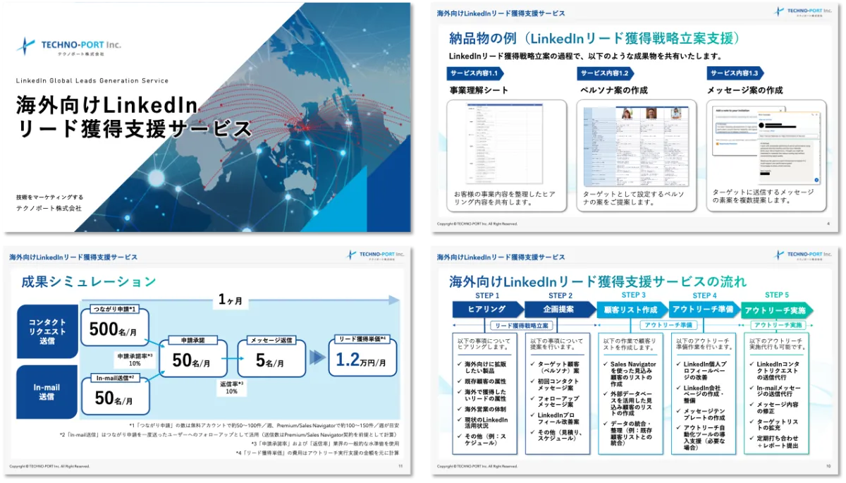 テクノポート株式会社では、BtoB企業を対象に、LinkedInを活用した新しい海外展開支援サービスのモニターを募集しています。本サービスは、企業が海外市場に進出するための強力なツールとなります。モニターとして参加することで、特別料金でサービスを受けることができるチャンスを手に入れましょう。