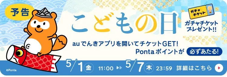2026年5月1日から5月7日の間、auエネルギー&ライフ株式会社は、春の訪れを祝う「こどもの日限定ガチャ」を実施します。このイベントは、auでんきアプリを利用しているすべてのお客さまに向けた特別企画で、その期間中にアプリを起動するだけで1枚のガチャチケットを獲得できます。これにより、誰でも手軽にガチャを楽しむことができ、最大1,000Pontaポイントが当たるチャンスもあるのです。
