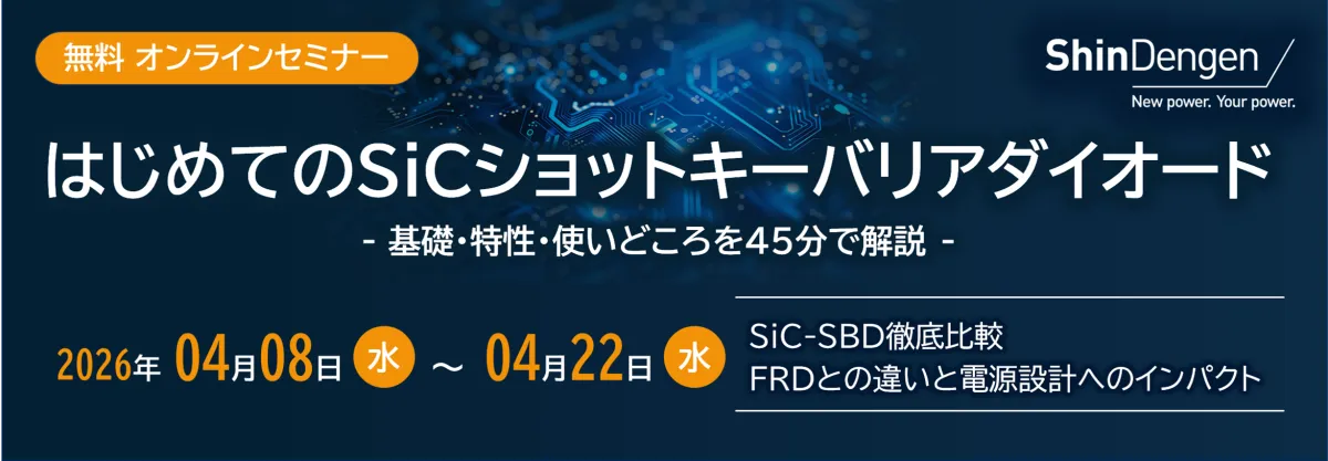 新電元工業株式会社は、2026年4月8日から4月22日までの期間、SiCショットキーバリアダイオード(SiC-SBD)についての無料オンラインセミナーを実施します。このセミナーは、先行して行われた「はじめてのSiCショットキーバリアダイオード」のオンデマンド配信としても提供され、技術者やエンジニアにとって大変有益な内容となっています。