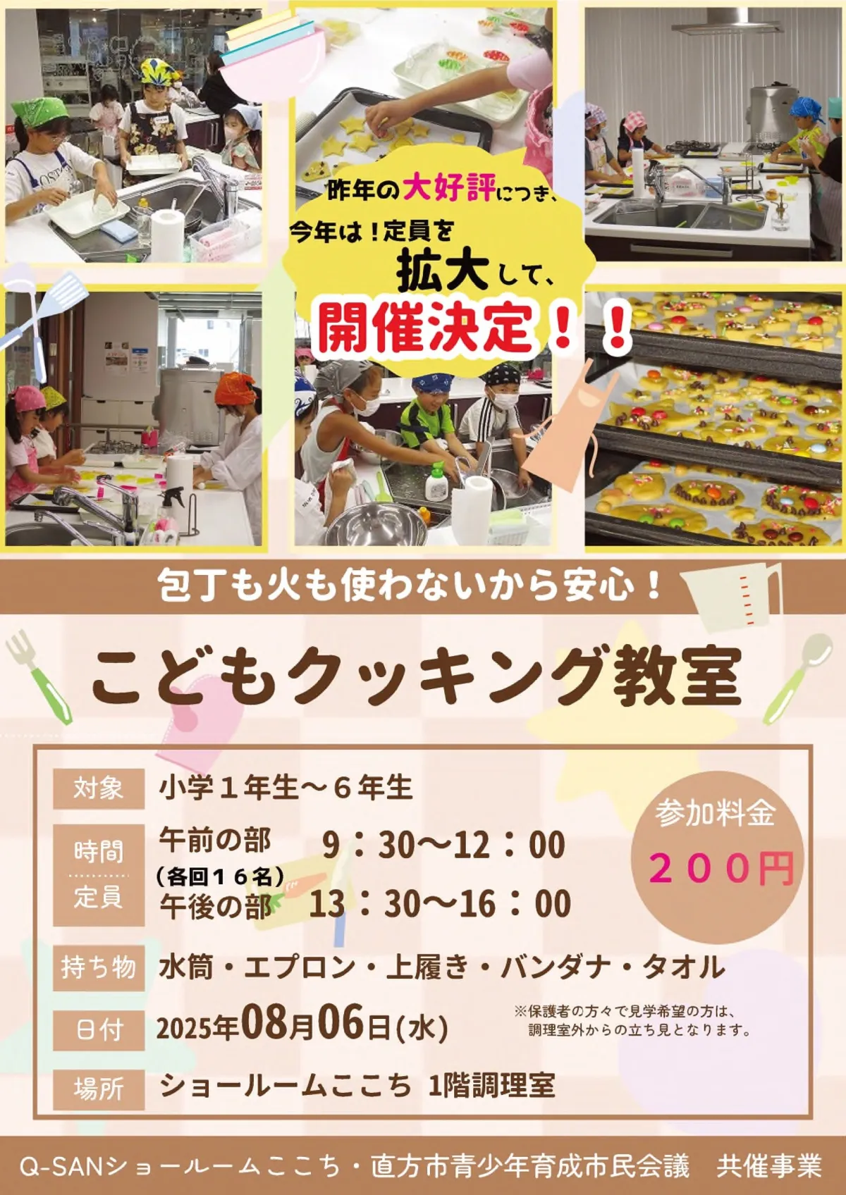 直方市が主催する「こどもクッキング教室」が、2025年8月6日(水)に開催されます。この教室は、小学生を対象にしたもので、安全に調理を楽しむ機会を提供します。子どもたちが包丁や火を使わずに安心して参加できる内容となっており、特に人気のあるクッキー作りに挑戦します。