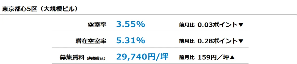このようなマーケットデータは、オフィス戦略を考える上で非常に重要な要素となります。新たなオフィスの選定や賃貸条件の見直しを行う企業にとって、これらの情報が参考となることでしょう。