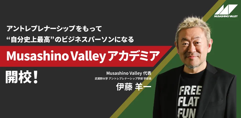 「Musashino Valley」は、東京都三鷹市に位置するスタートアップスタジオで、企業内大学『Yahoo!アカデミア』の学長を務めた伊藤羊一氏が運営を担当しています。伊藤氏は、これまでに約50,000名の人材育成に貢献しており、人生をより良くするための教育に情熱を注いできました。彼は今回、「Musashino Valley アカデミア」の学長に就任し、より多くの方々にアントレプレナーシップを学びの場を提供します。