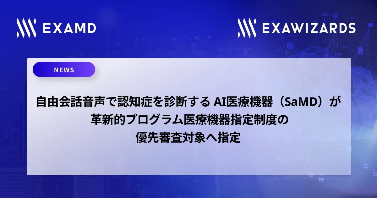 株式会社エクサウィザーズ(東京都港区)は、その100%子会社である株式会社ExaMDが開発中の革新的なAI医療機器が近日、厚生労働省の優先審査対象品目として正式に認定されたことを発表しました。この新しい医療機器は、自由な会話の音声を用いて認知症を診断する仕組みを持ち、医療分野での技術進歩が期待されています。
