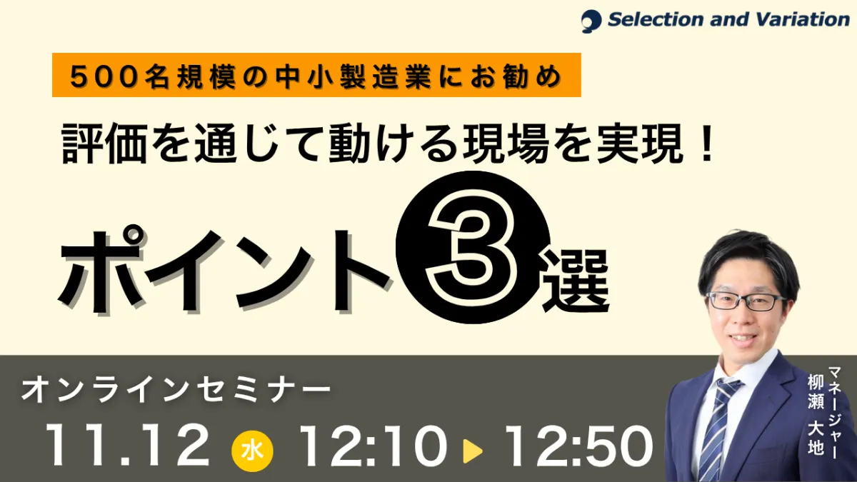 製造業は日本経済を支える重要な産業の一つである。しかし、500名規模の中小製造業においては、評価制度の導入や運用が適切に行われず、現場での動きが鈍くなってしまうことがしばしばあります。そこで、セレクションアンドバリエーション株式会社が主催するセミナー『500名規模の中小製造業にお勧め 評価を通じて動ける現場を実現!ポイント3選』が2025年11月12日に開催されることは、特に注目に値します。