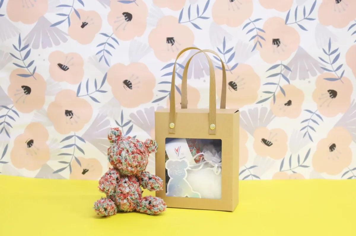 もう一つは、既存のキモノヤーンを使用するタイプです。この場合、約30mのキモノヤーンがセットされており、手軽に制作を楽しむことができます。この場合も、どのような表情のクマが出来上がるかは作り手の腕によって変わるため、完成するまでのワクワク感が楽しめます。