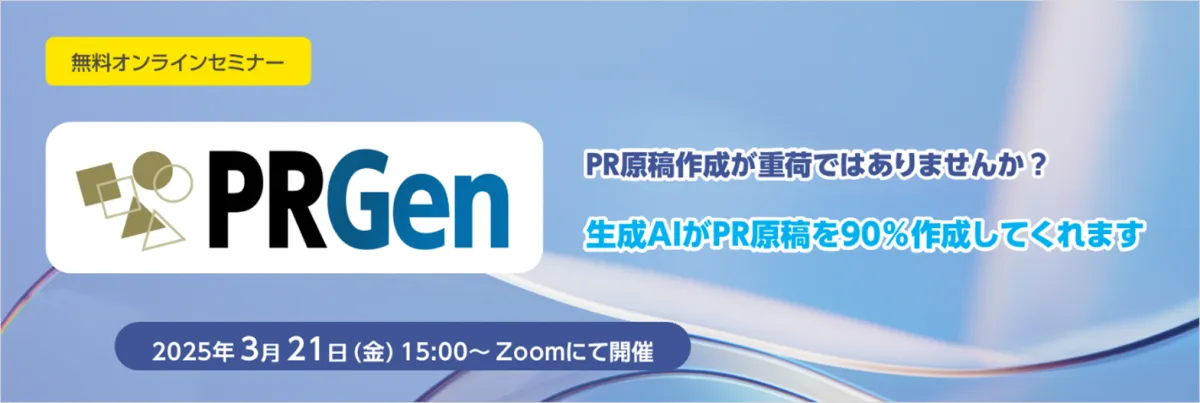企業のPR活動は、現代においてますます重要な役割を果たしています。しかし、その一方でPR原稿の作成にかかる負担が増大しているのも現実です。株式会社ニーズウェルでは、そんなPR担当者の悩みを解消するための「PR原稿自動生成ソリューション『PRGen』」を紹介する無料オンラインセミナーを開催します。このセミナーでは、PR業務の効率化を図るための具体的な手法や実績を紹介していきます。