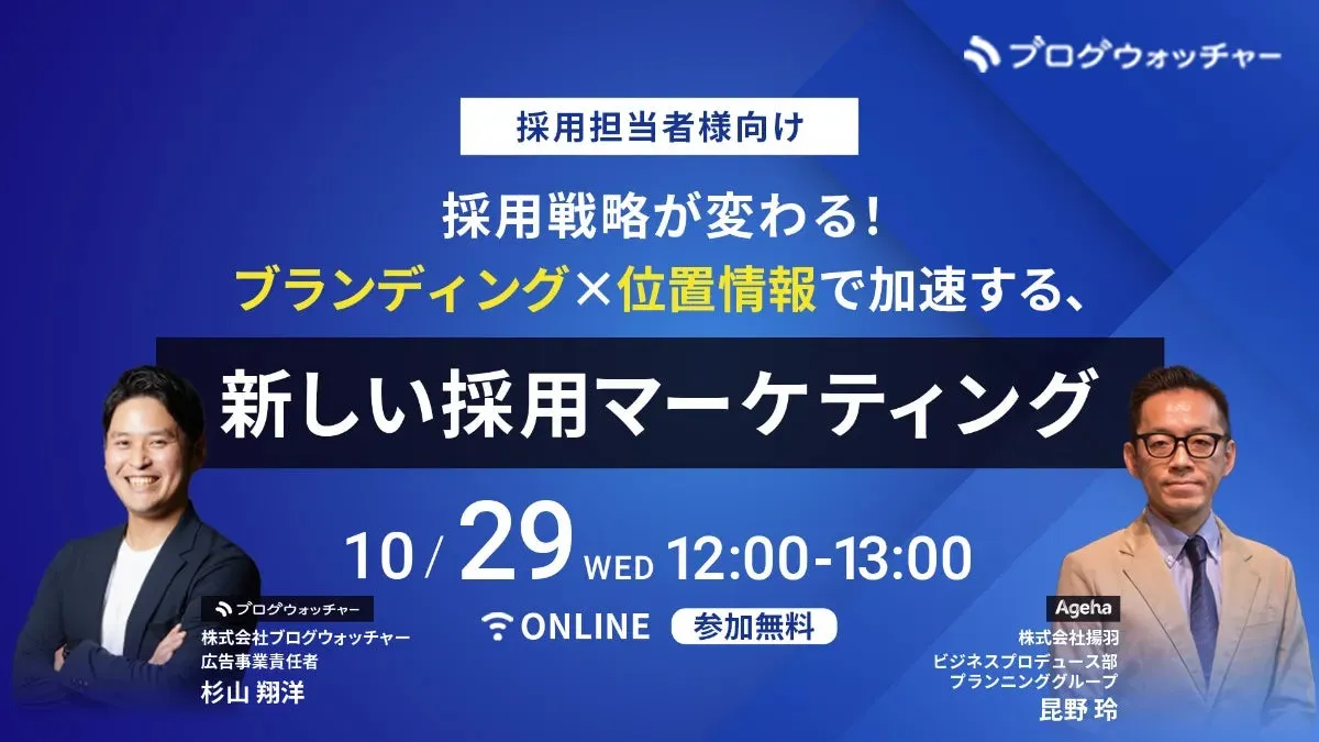 株式会社揚羽(東京都中央区)が、2025年11月29日(水)に「採用戦略が変わる!ブランディング×位置情報で加速する新しい採用マーケティング」というテーマでセミナーを開催します。今回のセミナーは、企業が直面する採用市場の変化に対応するための新しいアプローチを提案します。