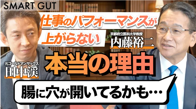 2026年1月30日より、株式会社Smart Gutが提供するYouTubeチャンネル「SMART GUT オナカのチカラ(腸活)チャンネル」にて、京都府立医科大学の内藤裕二教授と元ゴールドマン・サックスの田中渓氏による対談動画が配信される。この動画シリーズでは「仕事のパフォーマンスを落とさないための腸のマネジメント術」がテーマとなっており、現代社会に生きる私たちの腸がいかにパフォーマンスに影響を及ぼすかについて、最新の研究とともに紹介していく。