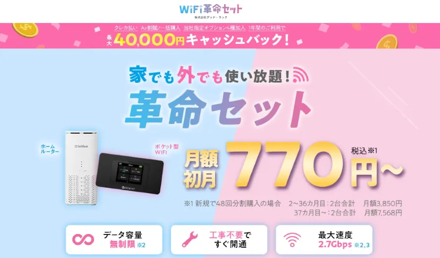 WiFiストアでは、特定の記事内にある「革命セット公式サイトはこちら」と書かれたピンクのボタンをクリックすることで、限定キャンペーンの対象となります。料金が安く、工事不要なサービスを掲載した記事もあり、読者が自分に最適なWiFiを見つけるための手助けを行っています。