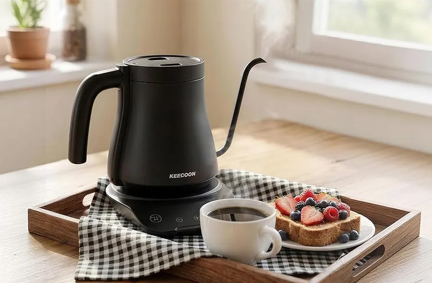 コーヒーやお茶をより美味しく、一層特別に楽しむためにこのケトルは最適です。自宅にいながら贅沢なカフェタイムが楽しめる本製品を使えば、毎日のティータイムやコーヒータイムが特別なものになるでしょう。KEECOONの電気ケトルは、ただの家電にとどまらず、生活のクオリティを向上させるアイテムとして多くの方の心を捉えています。