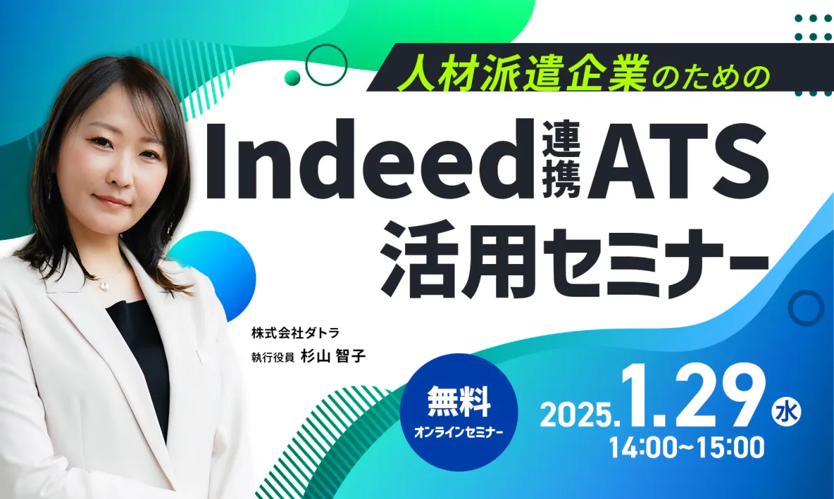 株式会社ダトラは、2025年1月29日(水)14:00から15:00まで、Indeed連携ATS「トルー」を活用したセミナーを実施します。このセミナーは、特に人材派遣企業にとって有益な情報が詰まった内容となっています。