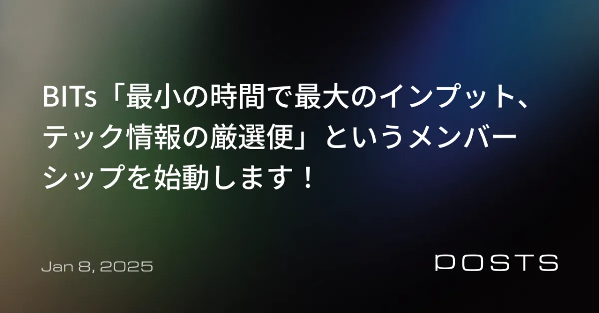 そんなビジネスパーソンのニーズに応えるべく、株式会社POSTS(代表取締役:梶谷健人)は、2025年1月8日から有料メンバーシップサービス「BITs」を開始します。このサービスは、厳選されたテクノロジートレンドや実践的なビジネスノウハウを提供することを目的としています。