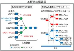岐阜大学の研究グループが、糖鎖生合成に関与する酵素遺伝子の進化を解析し、生物種固有の糖鎖の形成メカニズムを明らかにしました。この研究は、ヒトにおける糖尿病やがんとの関連性があるN型糖鎖の枝分かれ構造に焦点を当てています。