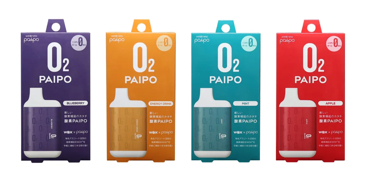 - - 商品名: 酸素PAIPO SQブルーベリー(青)、酸素PAIPO SQエナジードリンク(黄)、酸素PAIPO SQミント(緑)、酸素PAIPO SQアップル(赤)