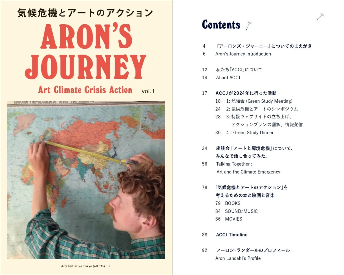 NPO法人アーツイニシアティヴトウキョウ(AIT)が、気候危機とアートの接点を探る新しい年刊誌『ARON'S JOURNEY』を創刊しました。これは、アート・クライメイト・コレクティヴ・ジャパン(ACCJ)の取り組みをまとめたもので、アートが気候危機にどう向き合うかを考えるプラットフォームを提供することを目的としています。