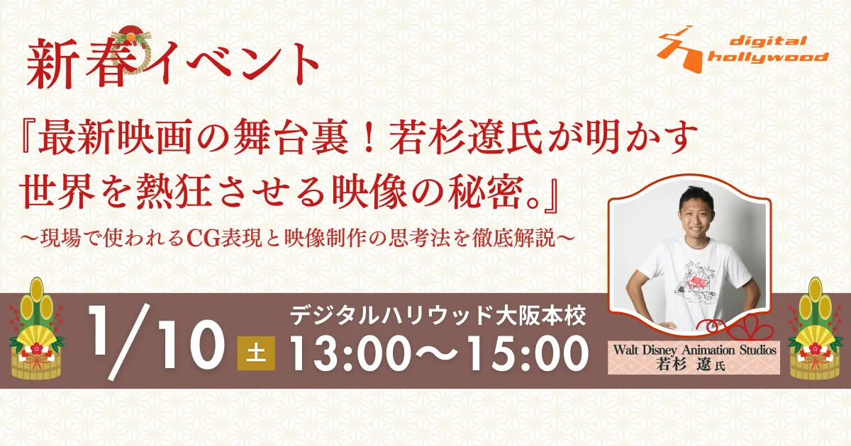 2026年1月、思い描く未来を実現するための特別なイベントが、大阪にて開催されます。CGや映像の世界で活躍することを希望している方々に向けて、現役のレイアウトアーティスト、若杉遼氏が登壇します。彼は、ウォルトディズニーアニメーションスタジオで数々の名作の制作に関わった経験を持つプロフェッショナルです。