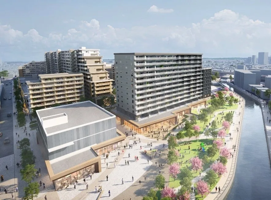 このプロジェクトは、船橋市が策定した『船橋都市計画市場1丁目地区地区計画』によるもので、目的は地域の利便性向上や住環境の形成、環境保全および防災に配慮したまちづくりです。具体的には、船橋駅から850mの位置にあり、周辺には海老川も流れています。地元市場に隣接することで、地域資源をうまく活用し、活気あるエリアを創出することになります。