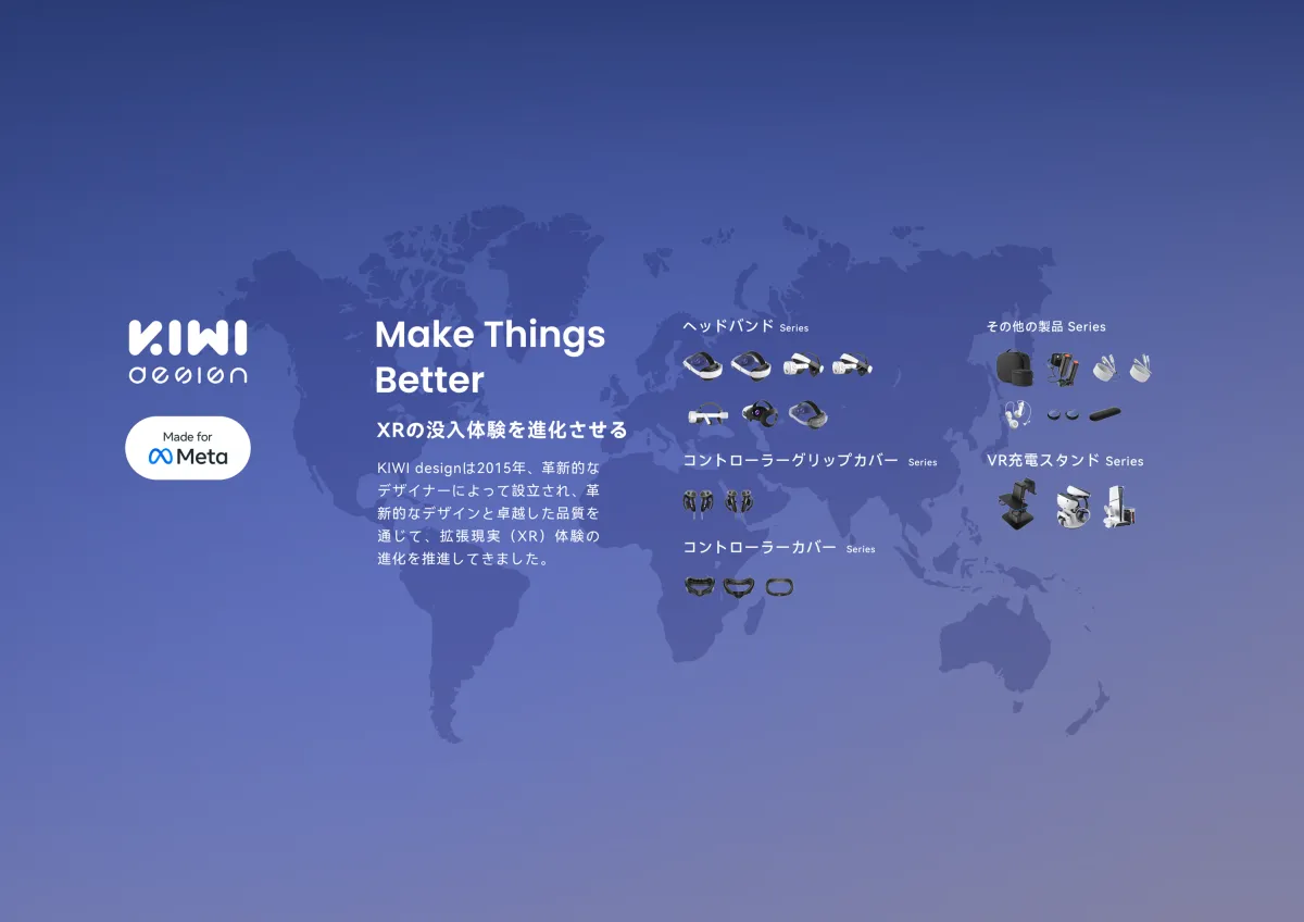 KIWI designは、XR/VRヘッドセット用アクササリーを専門としており、快適さや機能性、さらには品質を重視した製品設計を行っています。これにより、ユーザーにはより没入感ある体験を提供しています。企業は、既にグローバルな市場に対して安定した製品ラインとサプライチェーン体制を整えており、各種XRデバイスプラットフォームに対応した製品を展開することで、多くのユーザーや業界関係者から高い評価を受けています。
