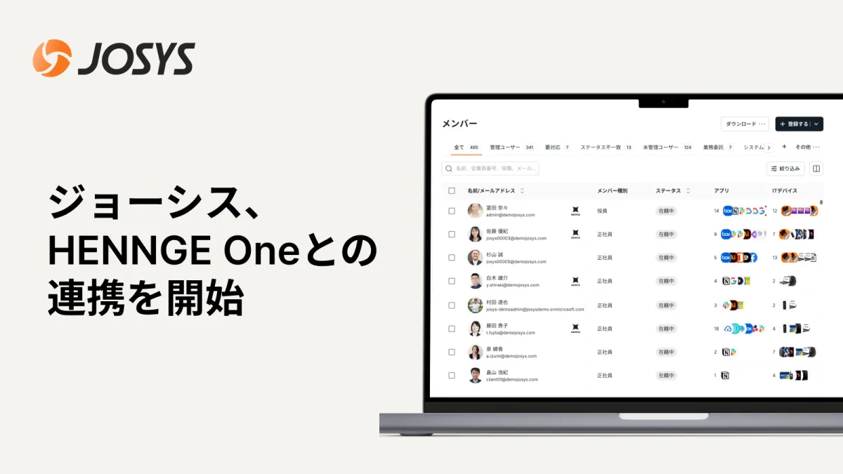 ジョーシス株式会社(本社:東京都港区、代表取締役CEO:松本恭攝)は、HENNGE株式会社が提供するクラウドセキュリティサービス「HENNGE One」との新しい連携機能を開始しました。これにより、企業は従業員のデータ管理を大幅に効率化し、セキュリティを強化することが可能になります。具体的には、HENNGE Oneが持つメンバー情報が自動でジョーシスに連携されるため、デバイス情報の取得がよりスムーズに行えるようになります。