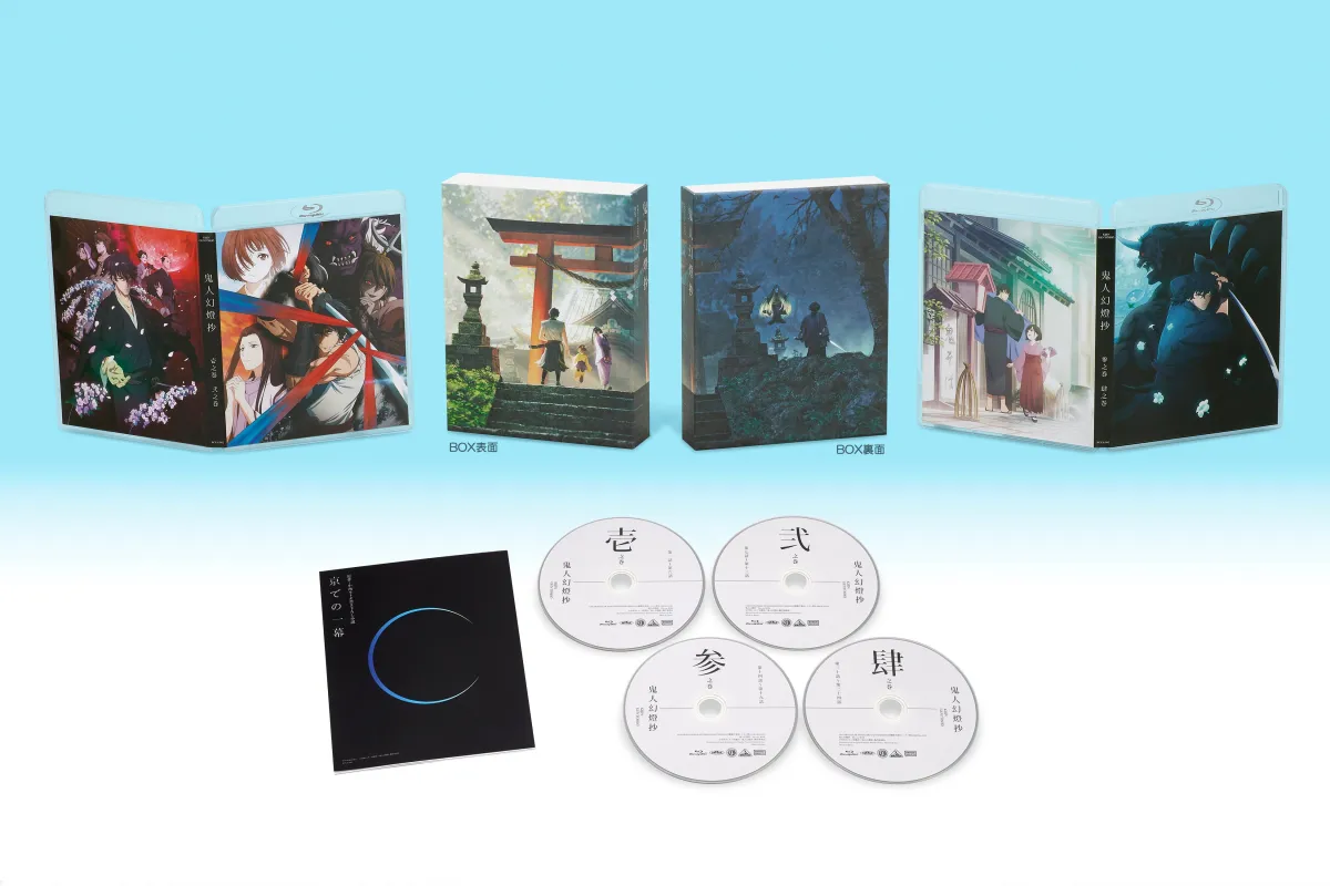 『鬼人幻燈抄Blu-ray BOX(特装限定版)』に収められる内容は、Blu-rayディスク4枚に全24話がギュッと詰まっています。特典として、中西モトオによる書き下ろし小説「京での一幕」や、監督・相浦和也と声優の八代拓による対談が収められた特製ブックレットが封入されています。さらに、映像特典としてPV&CM集も見逃せません。