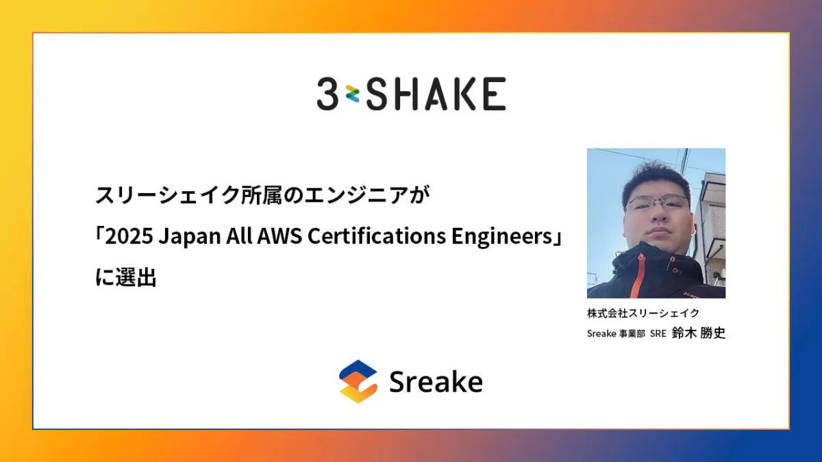 株式会社スリーシェイク(東京都新宿区)は、所属エンジニアの鈴木勝史氏が「2025 Japan All AWS Certifications Engineers」に選ばれたことを発表しました。これは、日本国内でAWS認定資格を全て取得したエンジニアを表彰するプログラムであり、スリーシェイクの技術力を象徴する嬉しいニュースです。