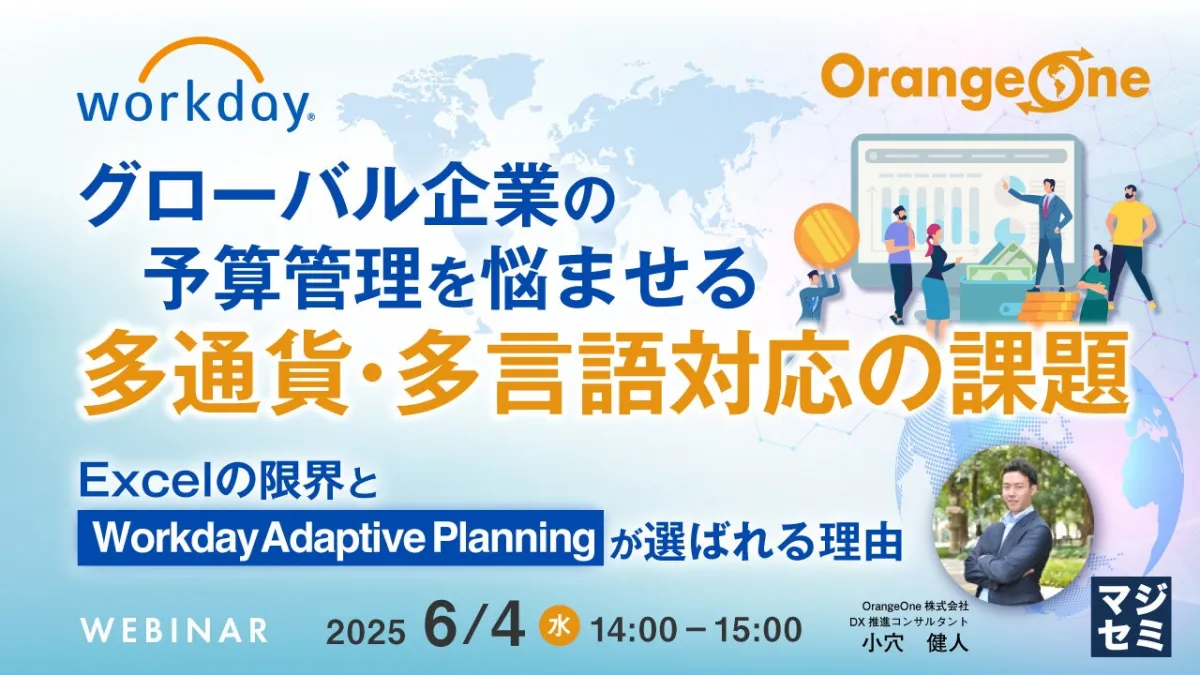 本ウェビナーでは、「Workday Adaptive Planning」の特徴とその利点を詳しく解説します。予算管理に関する最新情報や導入のステップについても触れる予定です。参加いただくことで、グローバル企業が直面する具体的な課題を理解し、解決策を見つけられる貴重な機会です。