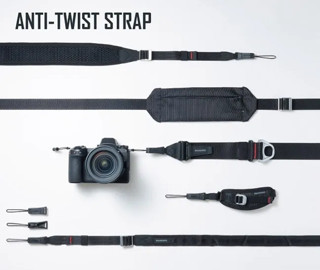 『アンチツイストストラップ』の特長は、クイックリリースコネクターに組み込まれた円筒形のアンカーにあります。この設計により、カメラの動きに応じて360度自由に回転できるため、撮影中や移動中もストラップのねじれや絡まりが軽減され、常に快適な使用感が得られます。