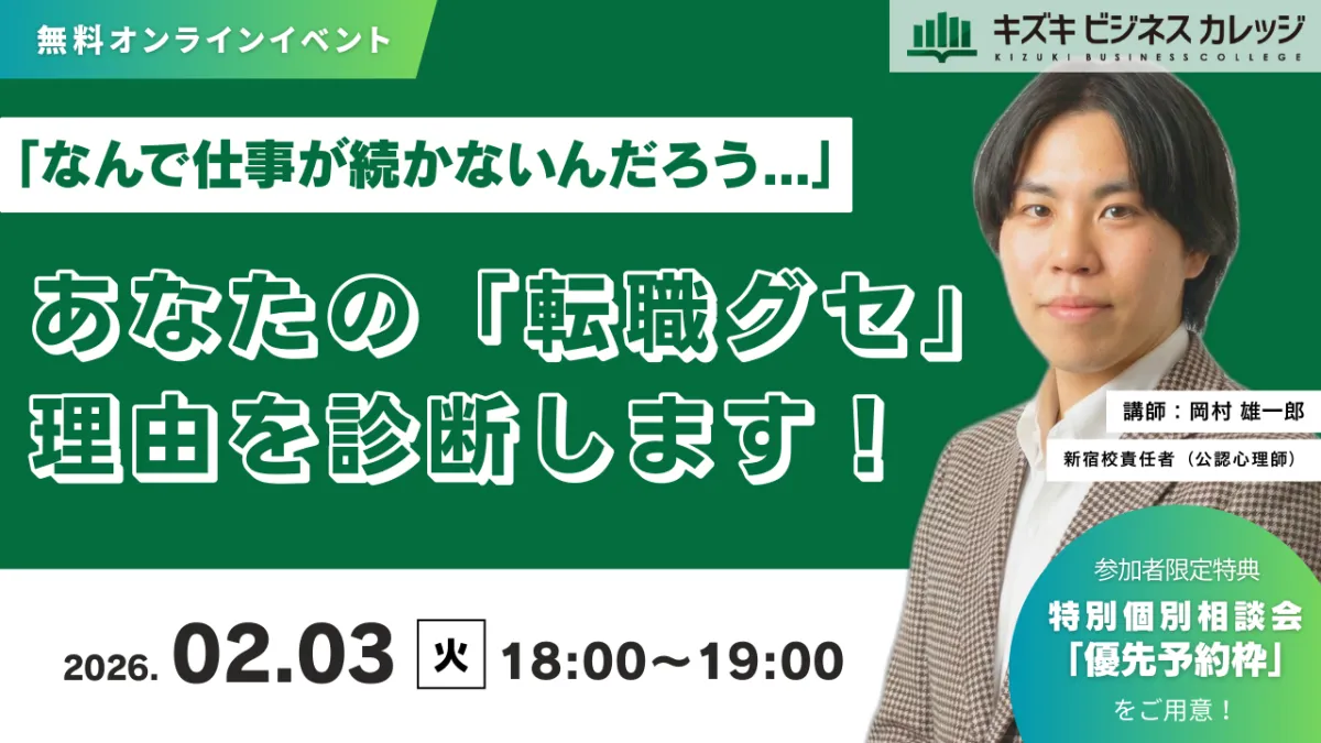 転職を繰り返して自分を責めているあなたへ、希望の光をお届けします。2026年2月3日、オンラインで開催される無料セミナーでは、「次の転職では失敗したくない」と考える皆さんのために、自己分析を基にした適職を見つける手助けをします。これまで「給料」「勤務地」といった条件面だけで仕事を選んできた方々は必見の内容です。