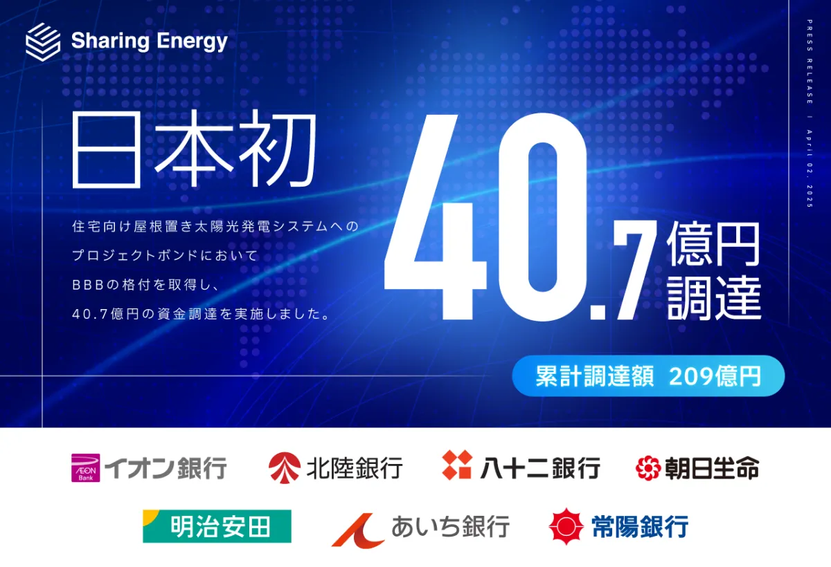 このプロジェクトボンドは、ゴールドマン・サックス証券株式会社がアレンジャーを務めており、株式会社格付投資情報センターからBBBの格付を取得しています。また、三井住友トラスト・パナソニックファイナンス株式会社との融資契約を締結し、必要な資金を確保しています。この資金調達により、シェアリングエネルギーは累計209億円の資金を確保し、さらなる事業拡大を目指します。