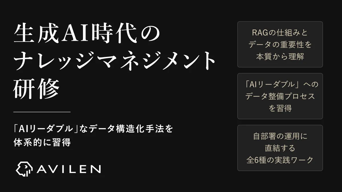 株式会社AVILENが新たに提供を開始した「生成AI時代のナレッジマネジメント研修」は、業績向上に極めて重要なナレッジのAIリーダブルなデータ形式への変革を助けるプログラムです。この研修は、特にRAG(検索拡張生成)を活用する際の効果を最大化することを目的としています。