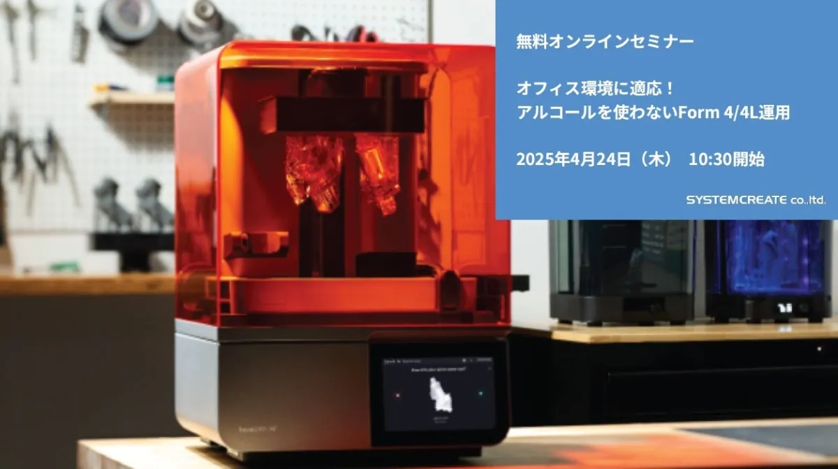 3Dプリンティングはますます身近な技術になっていますが、オフィス環境での導入にはさまざまな考慮が必要です。その中でも特に懸念されるのが、洗浄に使われるアルコール(有機溶剤)による環境への影響です。これを心配する方に向け今回の無料オンラインセミナーが開催されます。主催するのは大阪府の総合技術商社、株式会社システムクリエイトです。セミナーでは、アルコールを使用せずに水と台所洗剤で洗浄できる水洗いレジン「エキマテ」をご紹介します。