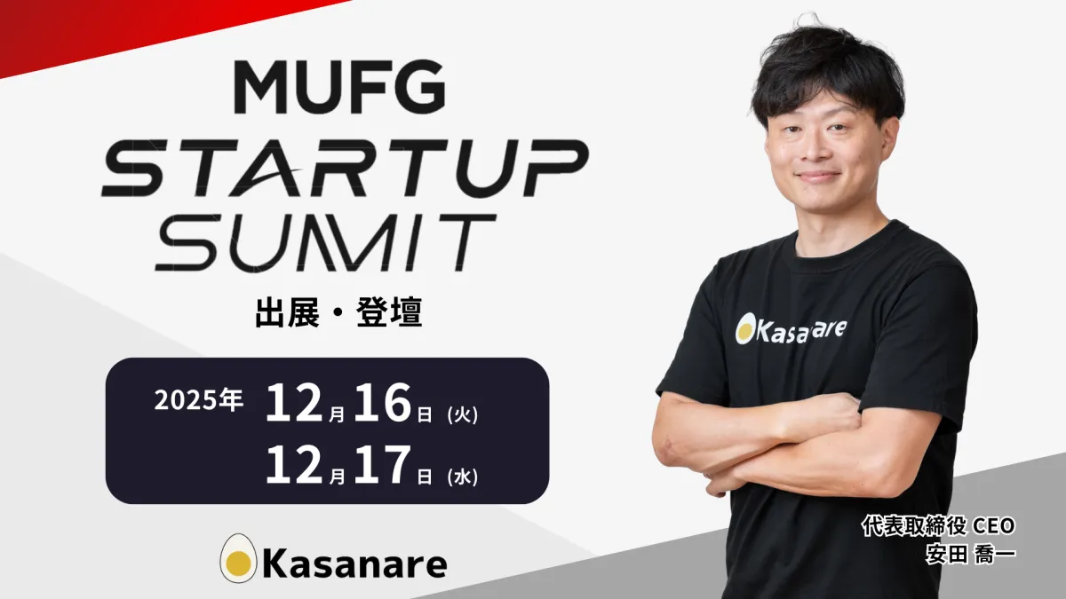 カサナレ株式会社(本社:東京都渋谷区、代表取締役:安田 喬一)は、2025年12月16日と17日に開催されるスタートアップイベント「MUFG Startup Summit 2025」に出展し、安田がスタートアップピッチに登壇することが決定しました。このイベントは三菱UFJ銀行が主催し、スタートアップと大企業、さらには金融機関を結びつけることを目的としており、参加者同士が新たな共創を実現する貴重なコミュニケーションの場となっています。