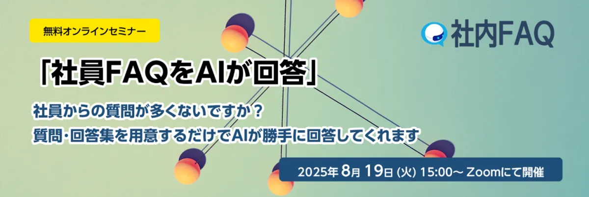 株式会社ニーズウェルが主催する無料オンラインセミナー「社員FAQをAIが回答」が、2025年8月19日(火)の15時から開催されます。このセミナーでは、少子高齢化や働き方改革に伴う雇用の流動化に直面する企業が直面する業務効率化の重要性を訴え、AIを利用した新しい働き方の提案が行われます。