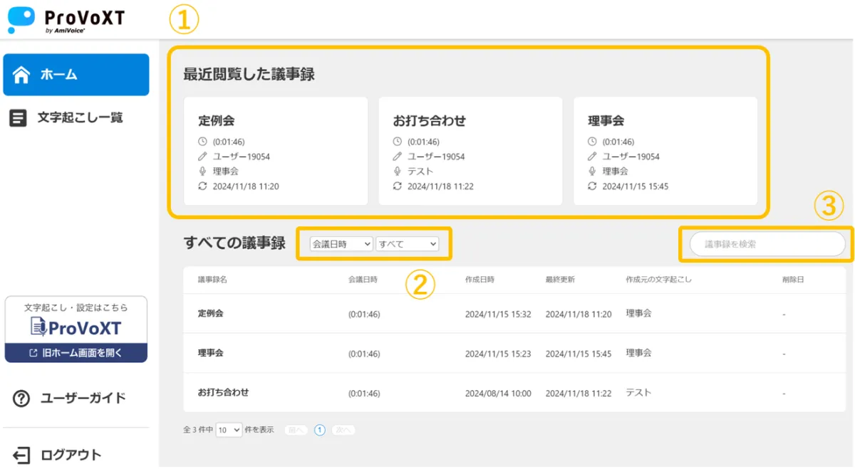 ・ 最近閲覧した議事録が表示される機能が追加されました。これにより迅速なアクセスが可能になり、議事録の複製もメニューボタンから簡単に行えます。
