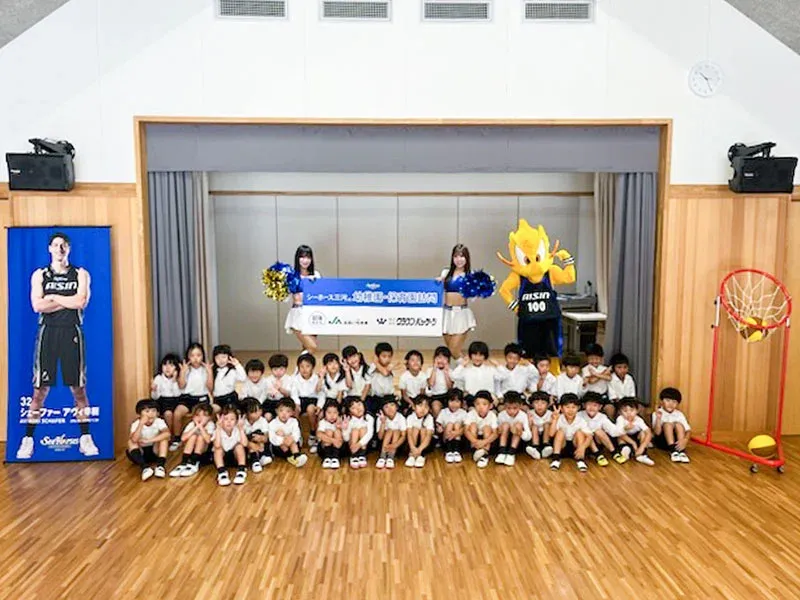 愛知県安城市にある桜井こども園で、シーホース三河の公式マスコットキャラクターであるシーホースくんと、Super GirlsのメンバーであるYUKIさん、SAYAKAさんが特別な訪問を行いました。この日、2024年10月28日(月)には、みんなで楽しむクイズやダンスを通じて、子どもたちに体を動かす楽しさを伝えるイベントが行われました。