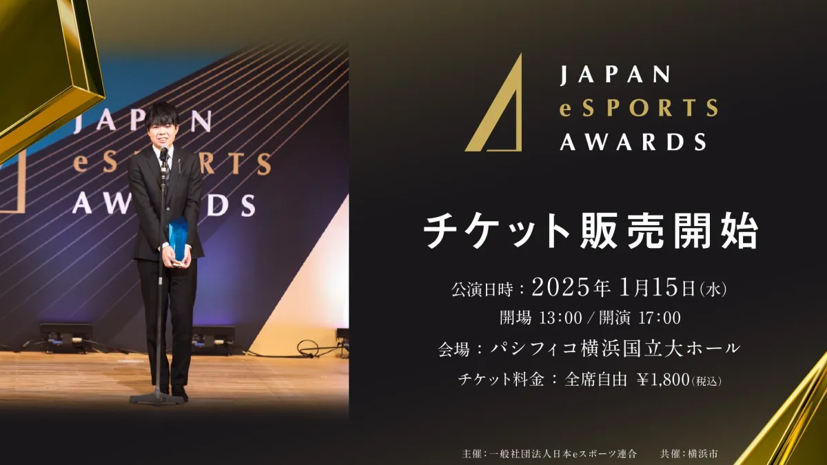 一般社団法人日本eスポーツ連合(JeSU)は、2025年1月15日(水)に横浜で開催される「日本eスポーツアワード2024」のチケット販売を2024年12月6日(金)から開始することを発表しました。このイベントは、国内のeスポーツシーンにおける年間の成果を称える重要な場として、多くのファンが注目しています。