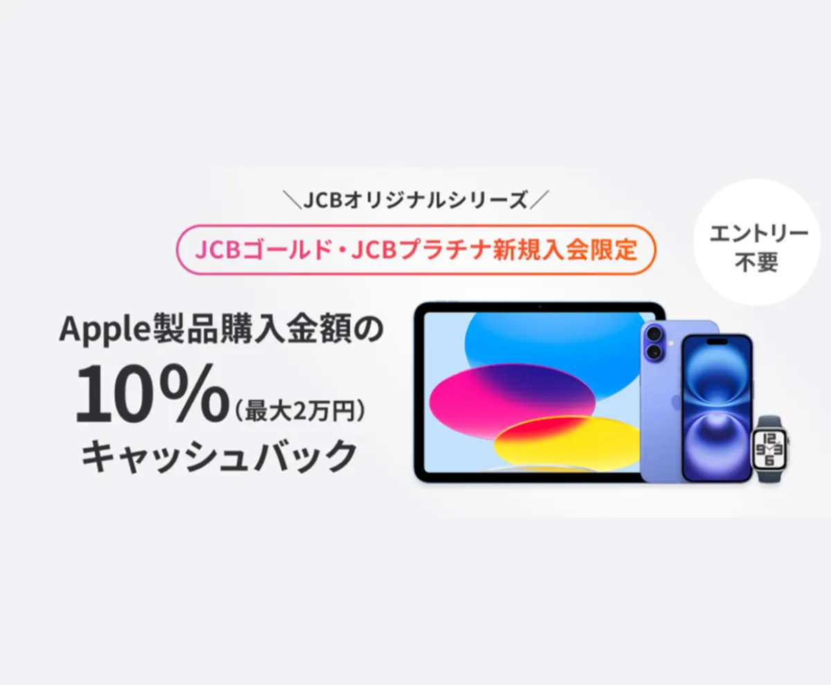 このキャンペーンでは、JCBプラチナカードやJCBゴールドカードを新たに取得した方々が、Apple製品の購入に伴うキャッシュバックを受けることができます。具体的には、Apple Storeで利用した金額の10%がキャッシュバックされ、プラチナカードの場合は上限2万円、ゴールドカードの場合は上限1万円が設定されています。
