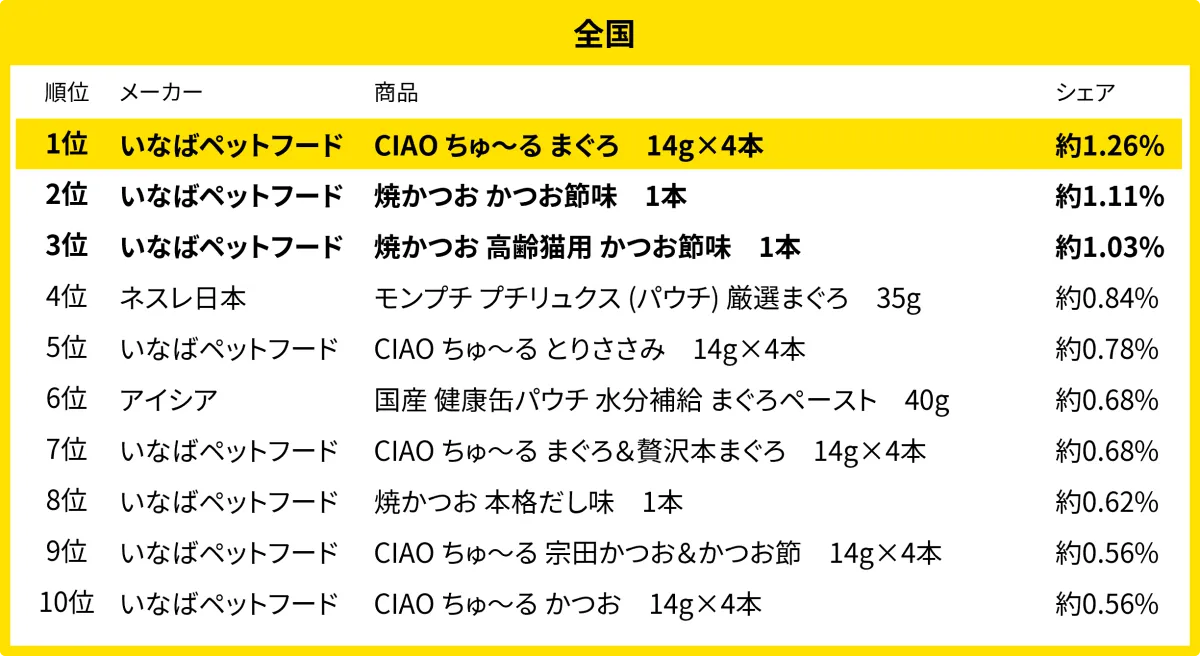 キャットフードの売れ筋、全国と地域別での動向