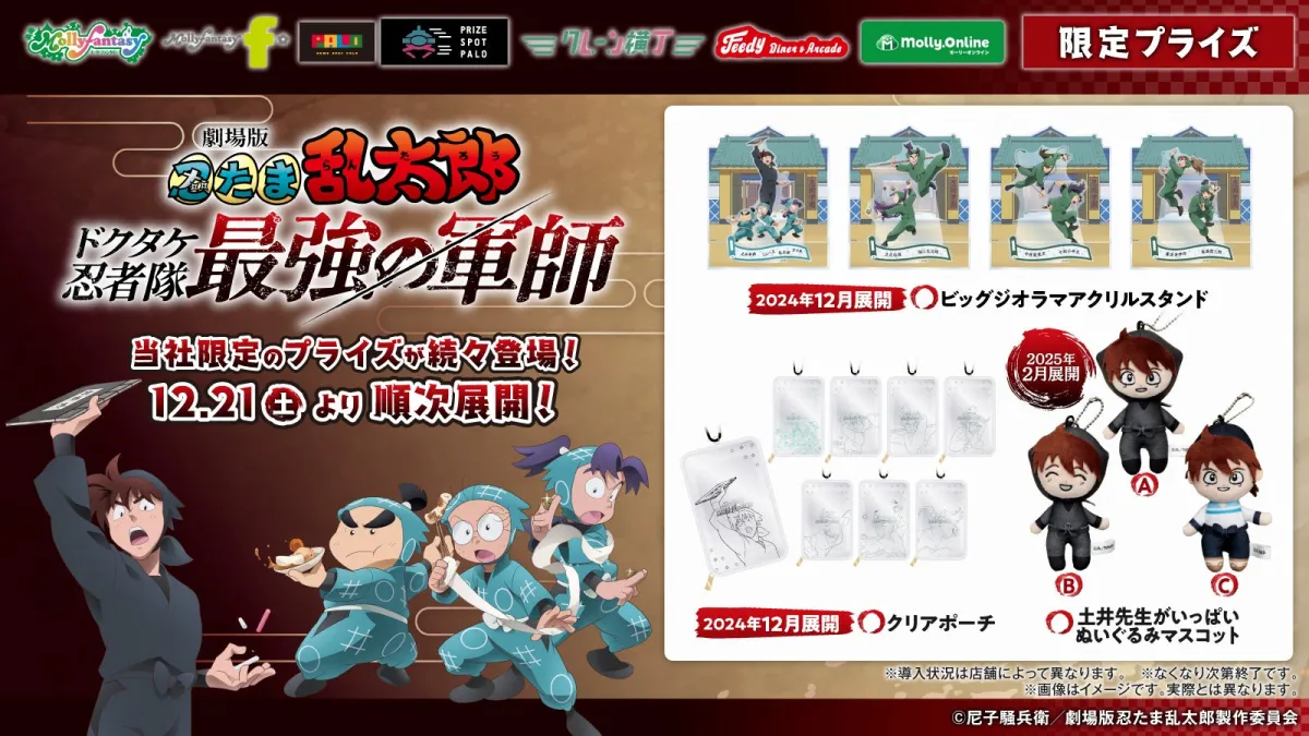 2024年12月20日(金)、大人気アニメ「忍たま乱太郎」の新作映画『劇場版 忍たま乱太郎 ドクタケ忍者隊最強の軍師』が公開されます。そして、その公開を祝して、モーリーファンタジーとPALO限定のプライズゲームが12月21日(土)から登場することが決まりました。このゲームでは、映画に登場するキャラクターたちを題材にした素敵な景品が展開されます。