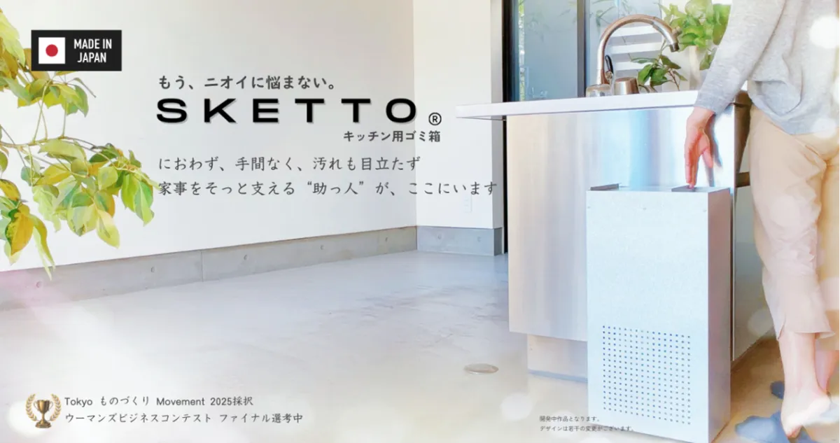 SKETTOは「密閉」するのではなく「通気」によってニオイを抑制するという逆転の発想から生まれました。生ゴミから発生するニオイの原因は、嫌気性微生物によるもので、密閉は逆効果であることが分かりました。SKETTOは金属製で、ニオイや汚れを吸着せず、簡単に管理できます。このコンセプトのもと、ゴミ処理にかかる時間も大幅に短縮され、家事をラクにする理想の製品へと進化しました。