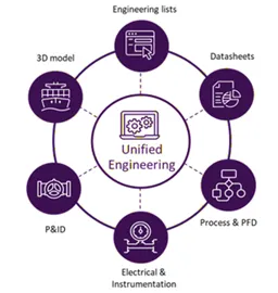 まず艤装分野では、1D(設計仕様)、2D(配置図)、3D(空間設計)をシームレスに統合する「Engineering Module」が導入されます。このシステムは、デジタルツインの基盤を構築し、設計から製造までのプロセスを一貫して管理できるようにします。