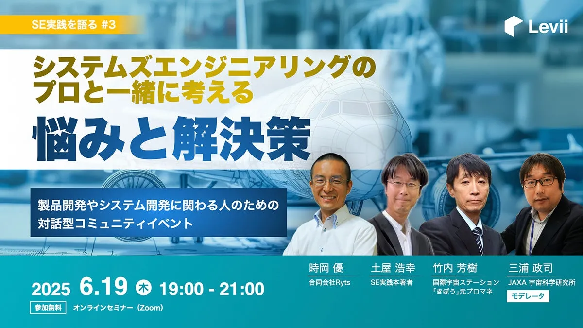 システムズエンジニアリング(SE)は、現代の多様化するプロジェクトや複雑な業務において、特に役立つ手法です。しかし、実務においてこの手法を効果的に活用するには、やってみないとわからないという悩みを抱える方も多いのではないでしょうか。そこで、株式会社レヴィは「SE実践を語る」というイベントシリーズを開催します。このイベントシリーズは、専門家が集まり、参加者と一緒にSEの実践について深めていく場です。