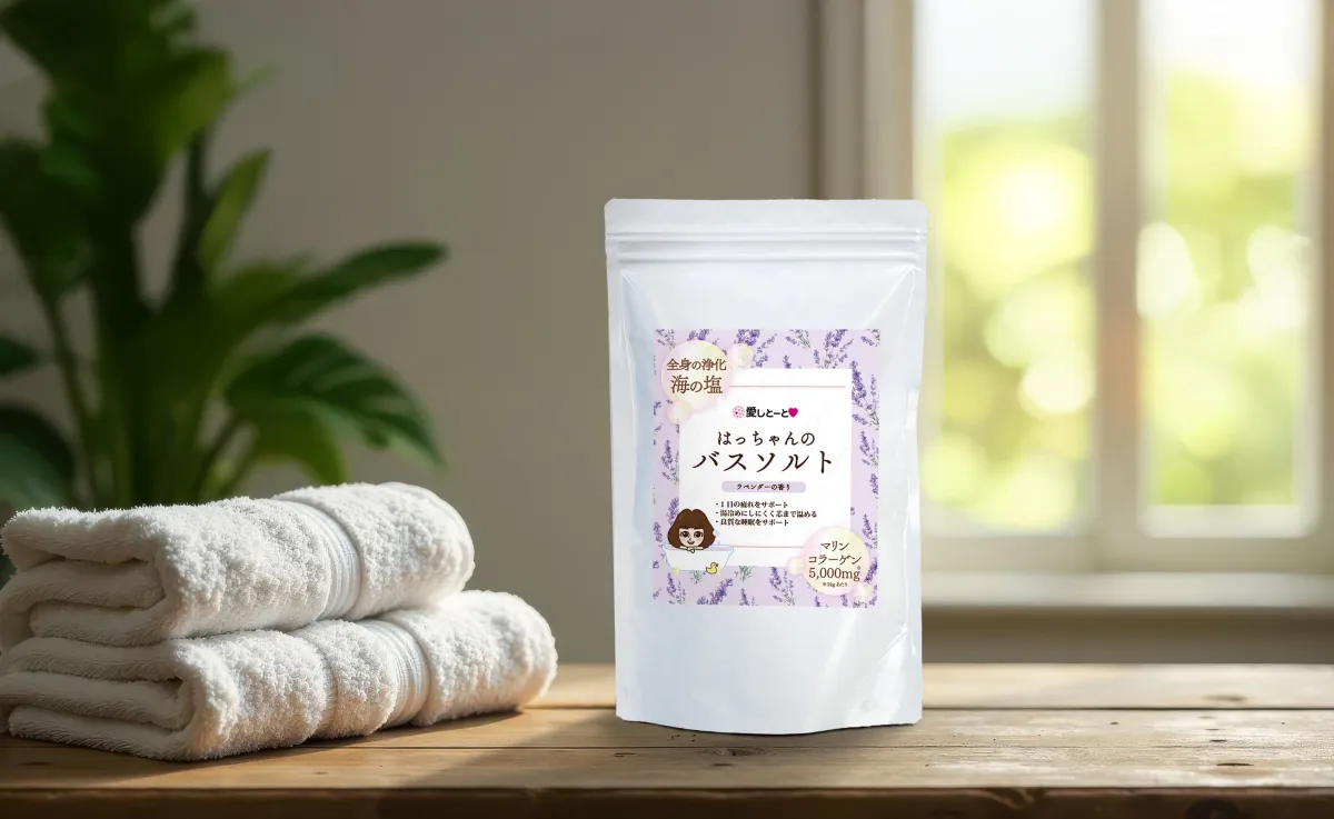 お風呂で疲れをリセットし、明日へのエネルギーを充電する「はっちゃんのバスソルト」。是非、健康な日常に役立ててください。