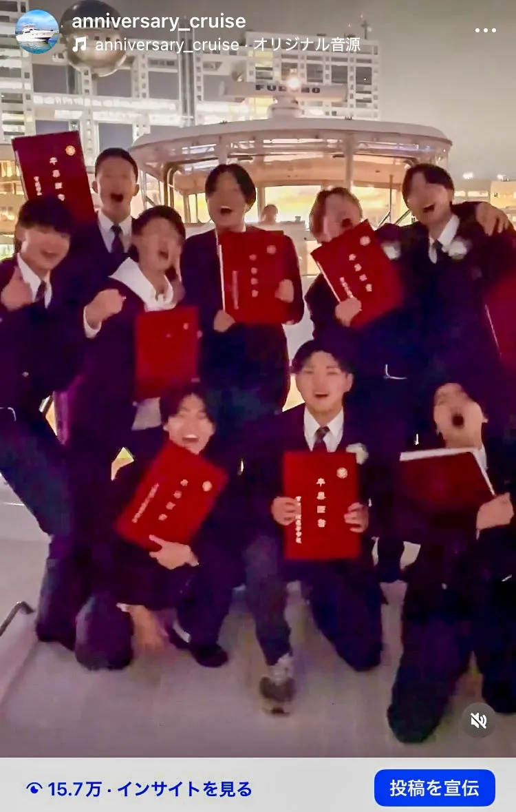 このようなクルージングの様子は、公式Instagramでのリール動画が約15万回も再生。それぞれの記念撮影や楽しむ姿が、実際の卒業イベントの雰囲気を映し出しています。