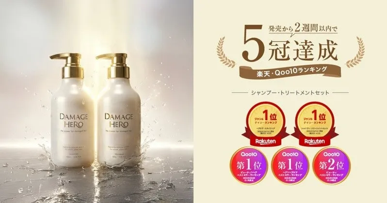 株式会社MDが手がける新感覚のヘアケアブランド「DAMAGE HERO(ダメージヒーロー)」は、2026年4月に市場に登場しました。そのわずか2週間後、人気のあるECサイト「Qoo10」や「楽天市場」で売上ランキング第1位を記録し、その実力を証明しています。