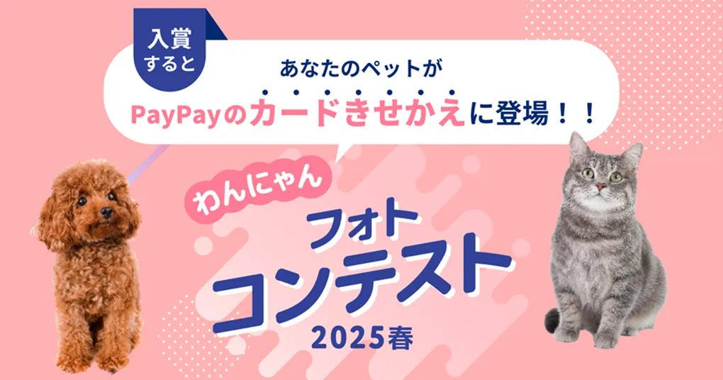 このコンテストは、犬や猫を飼っているPayPayのユーザーであれば、どなたでも参加可能です。愛らしいペットの写真を撮影し、「心癒された瞬間」をテーマにした作品をお待ちしています。