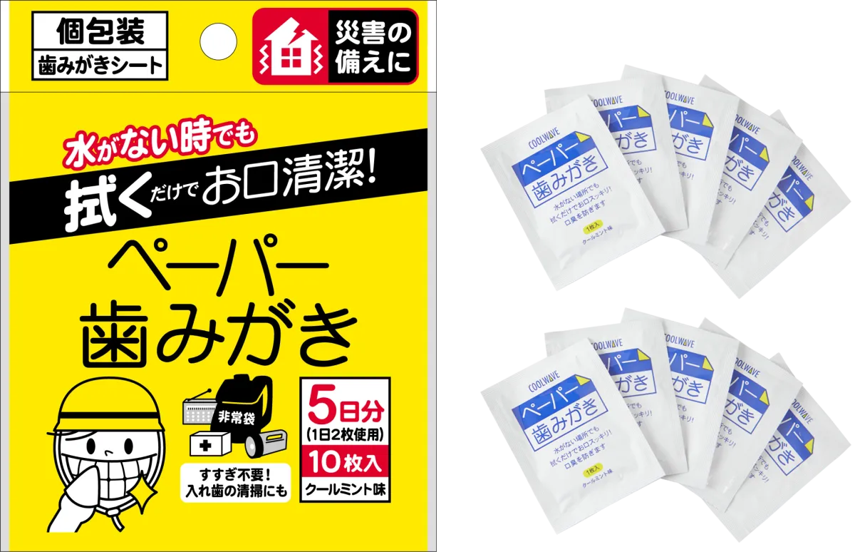 新商品:防災備蓄用 ペーパー歯みがき10包入