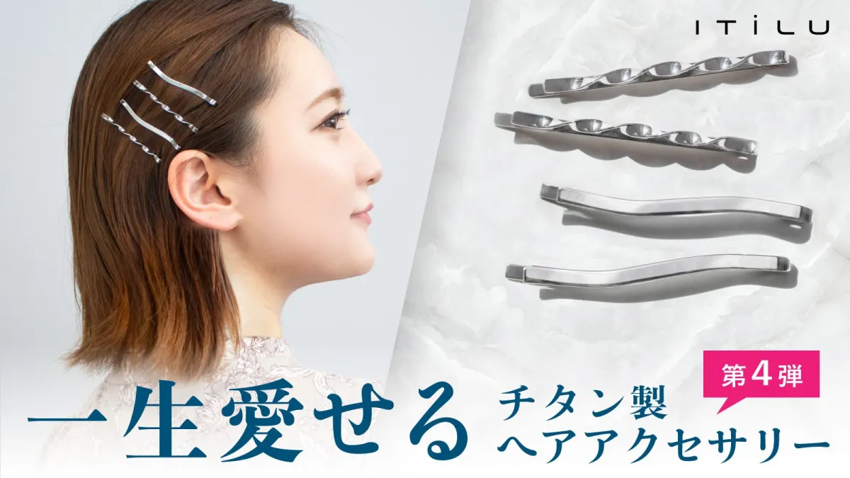 これまでスティックやコーム、ヘアバンドといったアイテムが展開されてきた「ITiLU(イチル)」シリーズ。ヘアピンは、特に地肌に触れる面積が大きいため、敏感肌にお悩みの方には嬉しい設計が求められます。金属製のヘアピンが一般的ですが、長時間の使用で肌に不快感を感じることもあるため、丁寧に開発されたこの製品は、特に敏感な方に最適です。