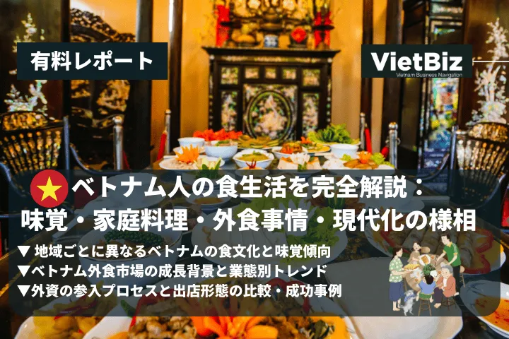 ベトナム市場は日本企業にとって非常に魅力的な場所となっています。その中でも特に、飲食業界は成長が期待されており、今後ますます多くの企業が進出を検討しています。そこで役立つのが、ONE-VALUE株式会社が発行する「ベトナム市場調査レポート」です。これは、ベトナム人の食生活や地域ごとの特色、外食市場のトレンドを詳しく分析した28ページのPDFレポートです。